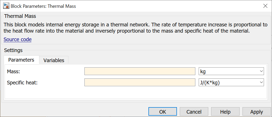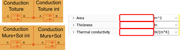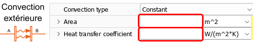 Compléter chacun des blocs de transfert thermique, toujours en utilisant les noms des paramètres globaux.