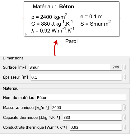 Chaque paroi possède les propriétés suivantes :